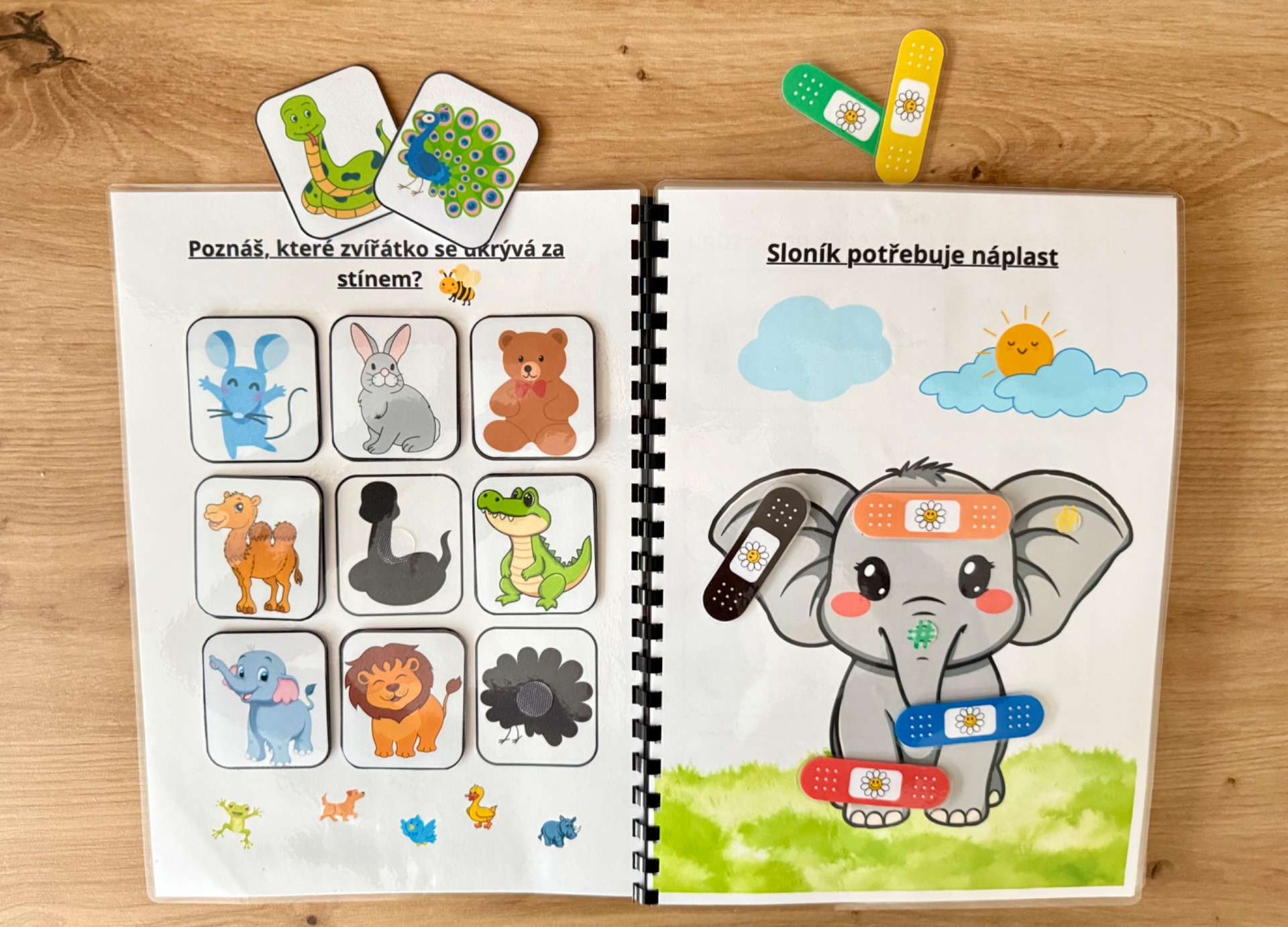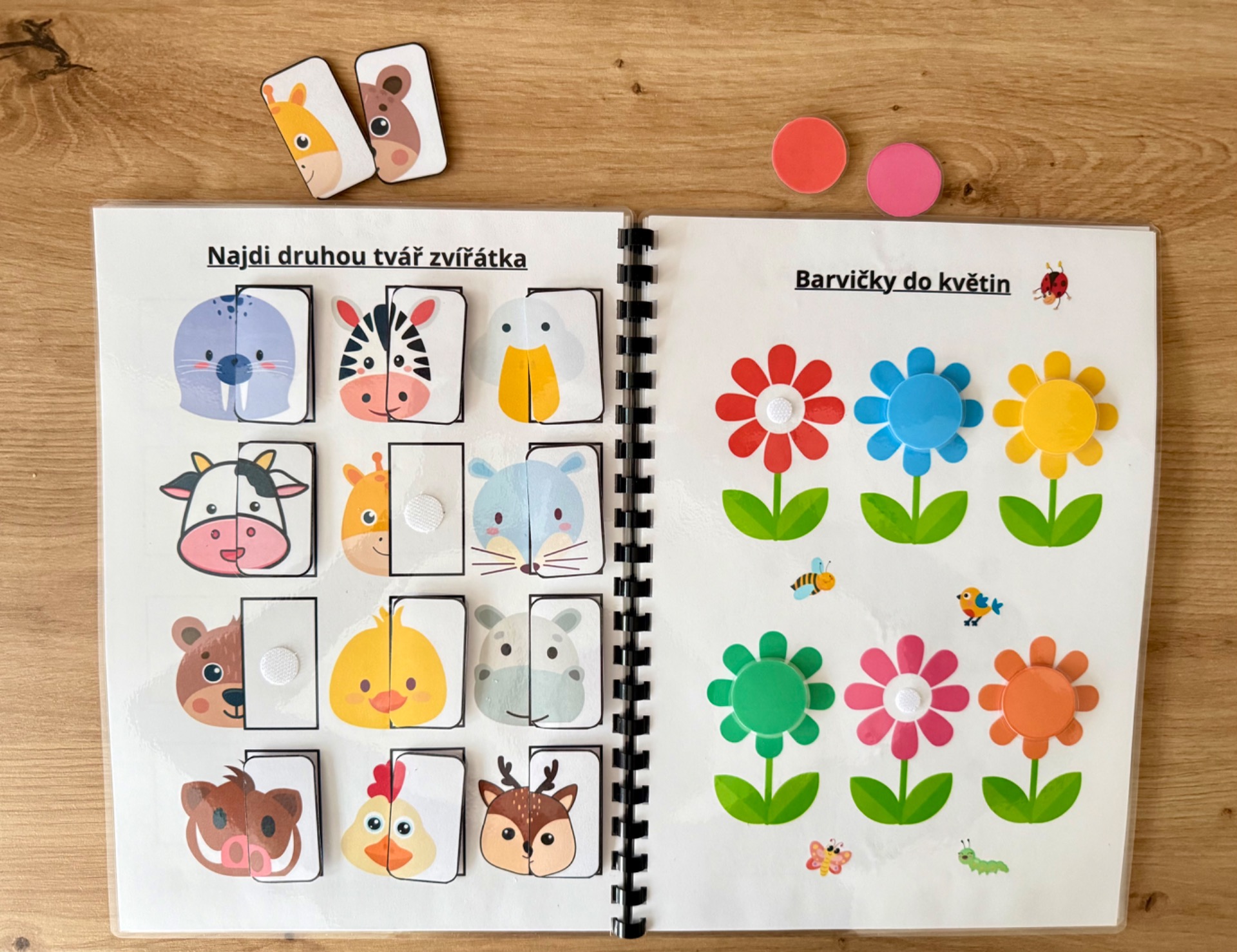 2.VERZE Interaktivní pracovní sešit na suchý zip pro nejmenší (2-roky)