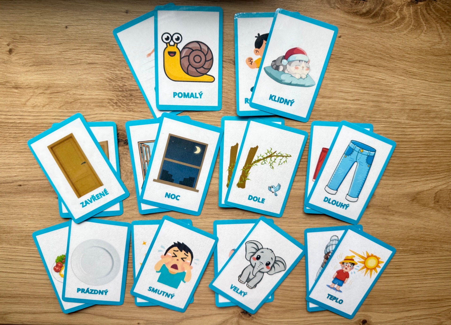 Hravé kartičky, díky kterým se děti učí poznávat protiklady zábavnou formou.