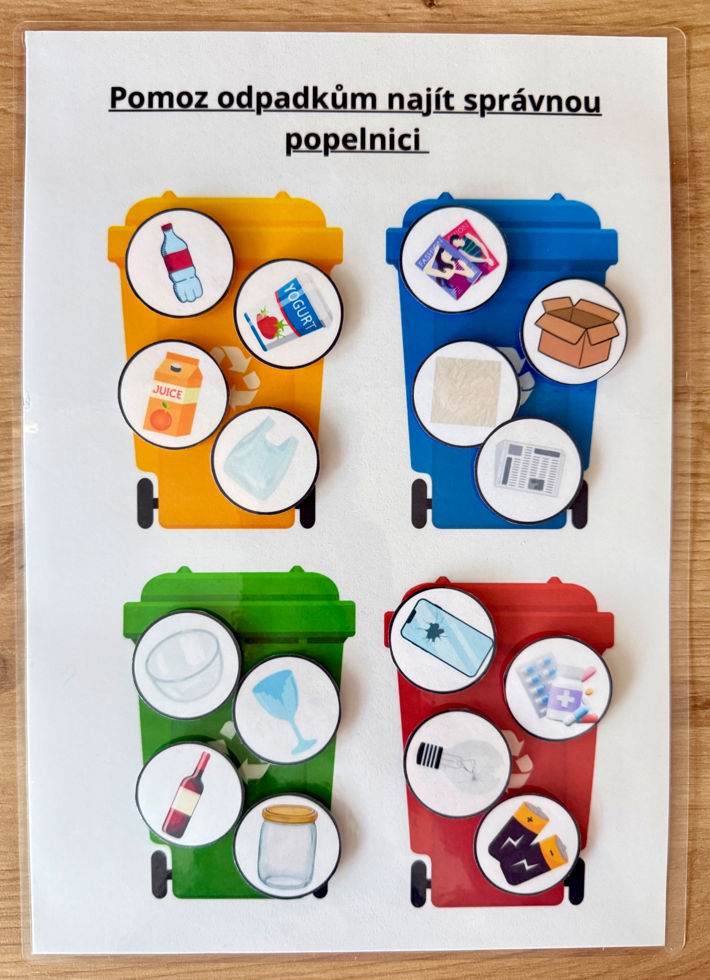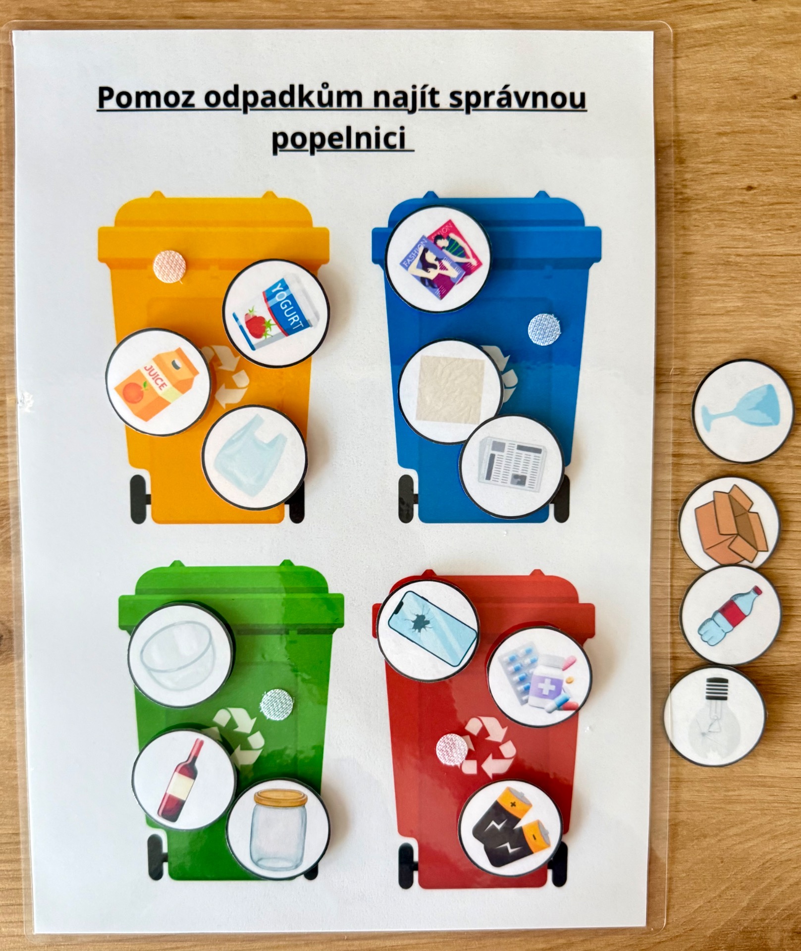 Děti třídí odpad do správných popelnic.