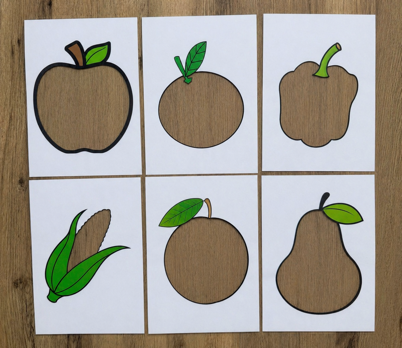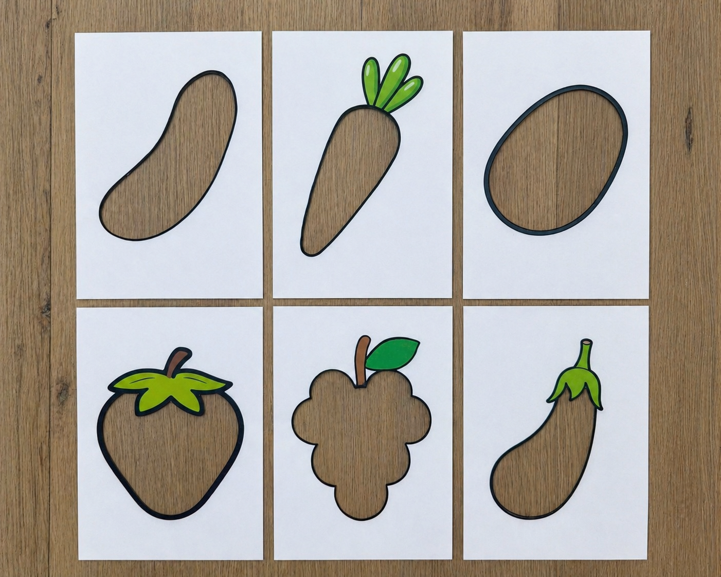 Varianta bez podkladů Sada obsahuje 16 zalaminovaných kartiček (A4) k přiřazování ovoce a zeleniny podle barev.